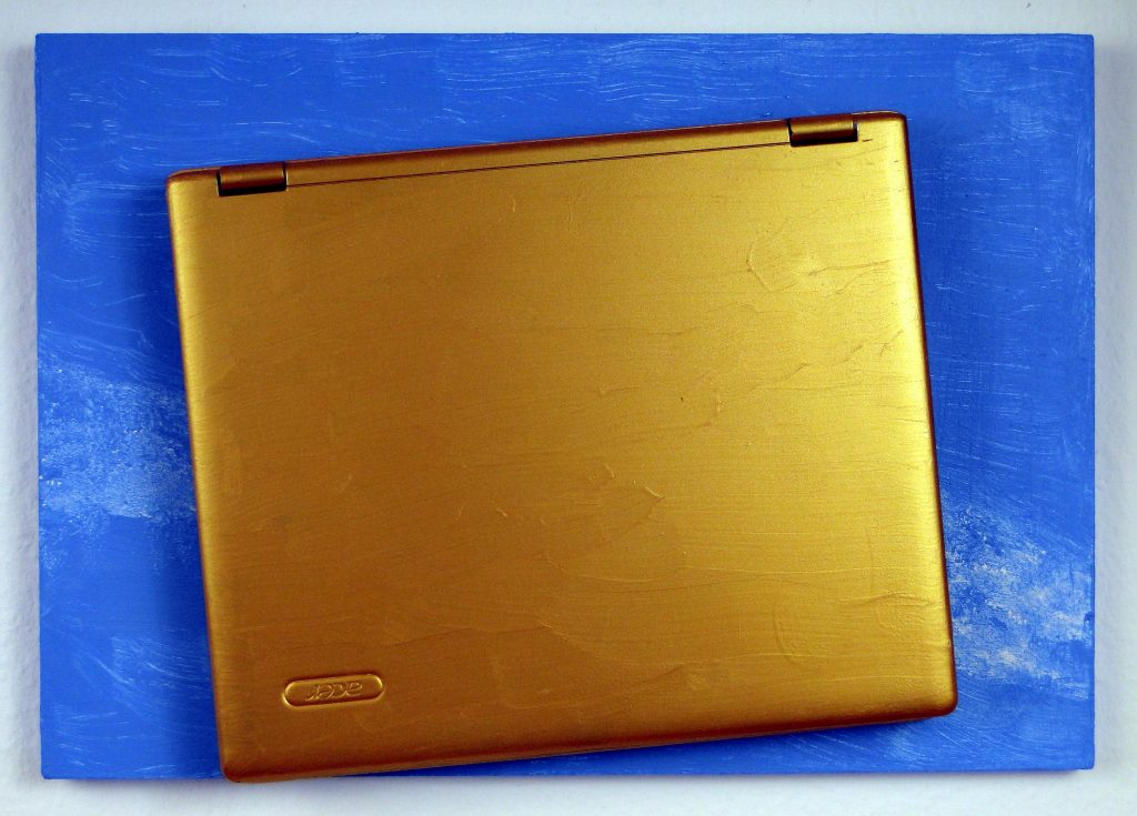 Material: aureated (color, not gold plated) Laptop on wood
